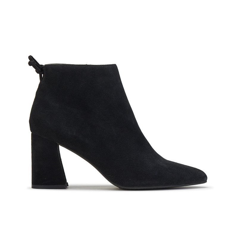 काले स्वीडिश चमड़े की नोकदार पैर की उंगली Chunky एड़ी पंप उच्च कट जूते