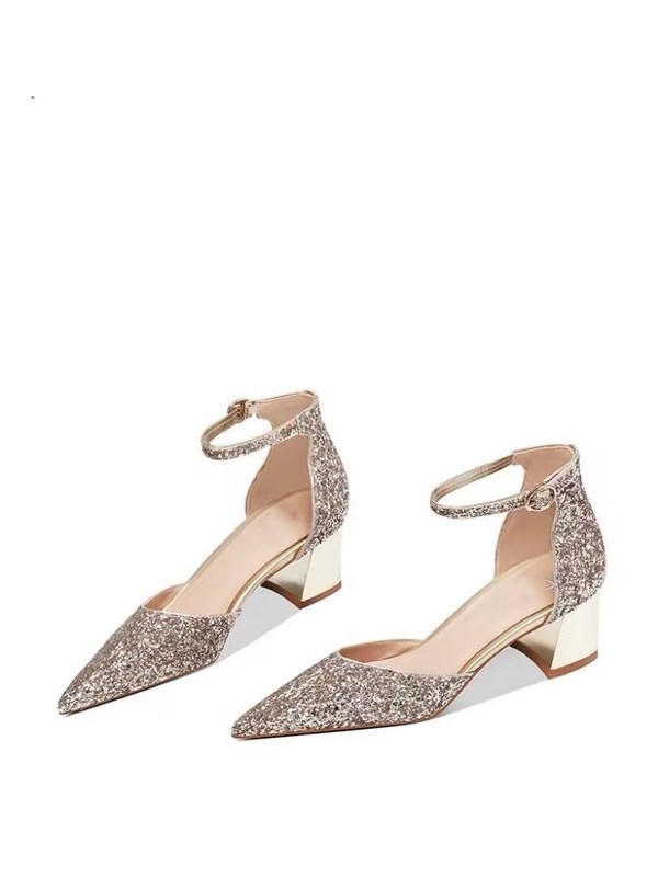 नौकरी के लिए महिलाओं के कपड़े जूते में एप्रिकोट रंग के साथ चंकी हील और स्ट्रैप डिजाइन